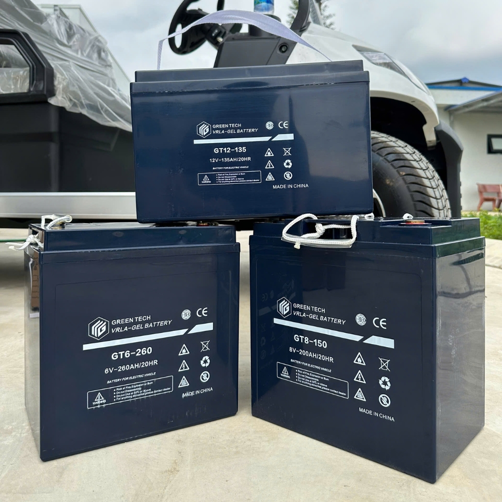 - ắc quy xe điện Greentech 8V 200Ah là ắc quy miễn bảo dưỡng, nên vấn đề kiểm tra nước để bổ sung là không cần thiết