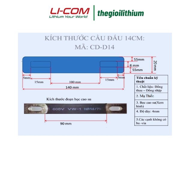 - Rộng 20 x Dài 140 x dày 2.0 mm (thích hợp dùng với bình 200Ah)